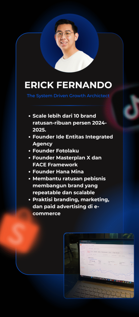 Ide Entitas adalah Integrated Marketing Afency yang hanya bekerja dengan brand terpilih untuk meningkatkan GMV lewat sistem holistik, brand owner fokus pada produk dan operasional.